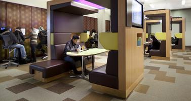 Collaborative work areas and spaces allow students to work together before, during, and after class, and provide the setting for collaboration and teamwork. These important spaces provide students with the opportunity to interact with peers and socialize. Collaborative areas provide locations for students to remain on campuses between classes, which increases their overall engagement.